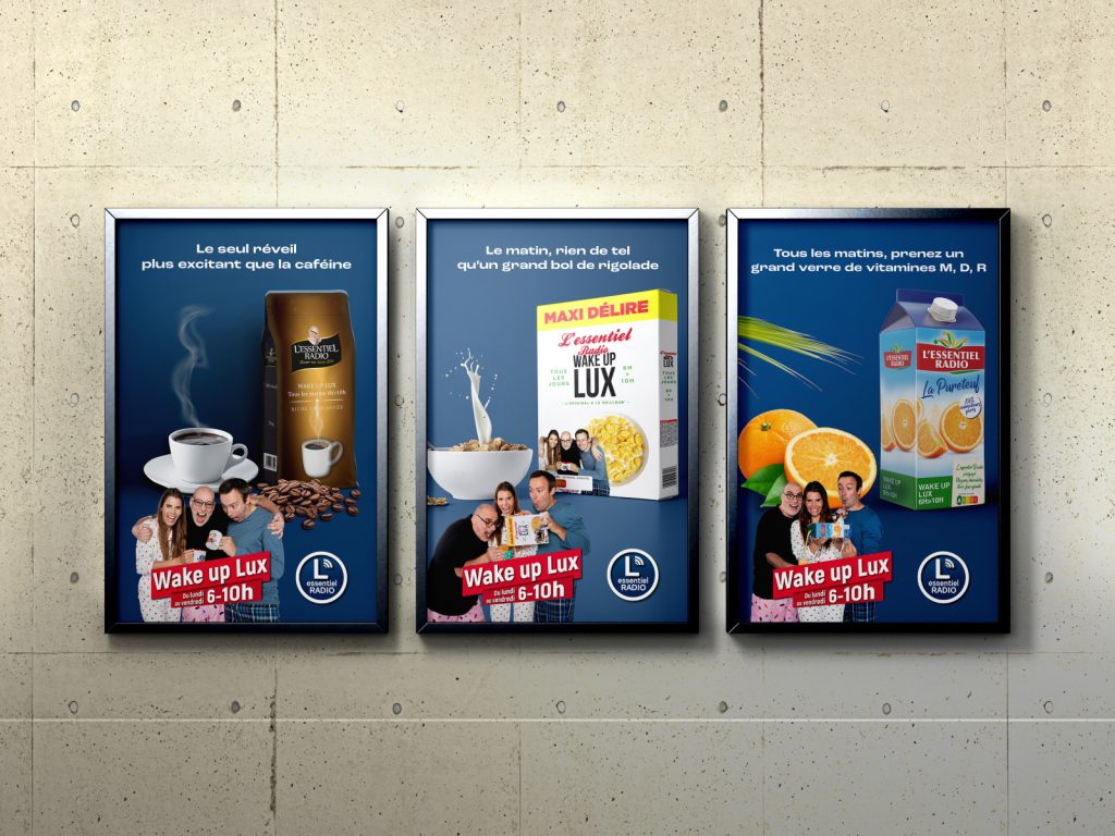 Le concept repose sur une idée simple : le matin, tout le monde consomme quelque chose. Café, jus d’orange, céréales… Alors pourquoi ne pas faire de la radio un produit matinal à part entière ? Nous avons détourné trois icônes du petit-déjeuner pour les revisiter aux couleurs de L’essentiel Radio. Résultat : des packshots ultra-réalistes, un univers coloré et des animateurs mis en scène dans des situations complices et chaleureuses.