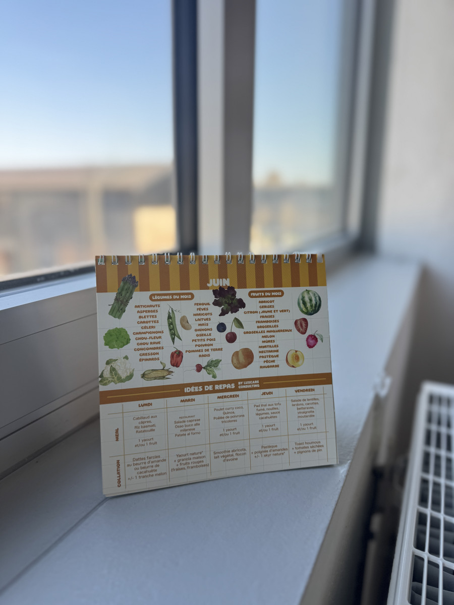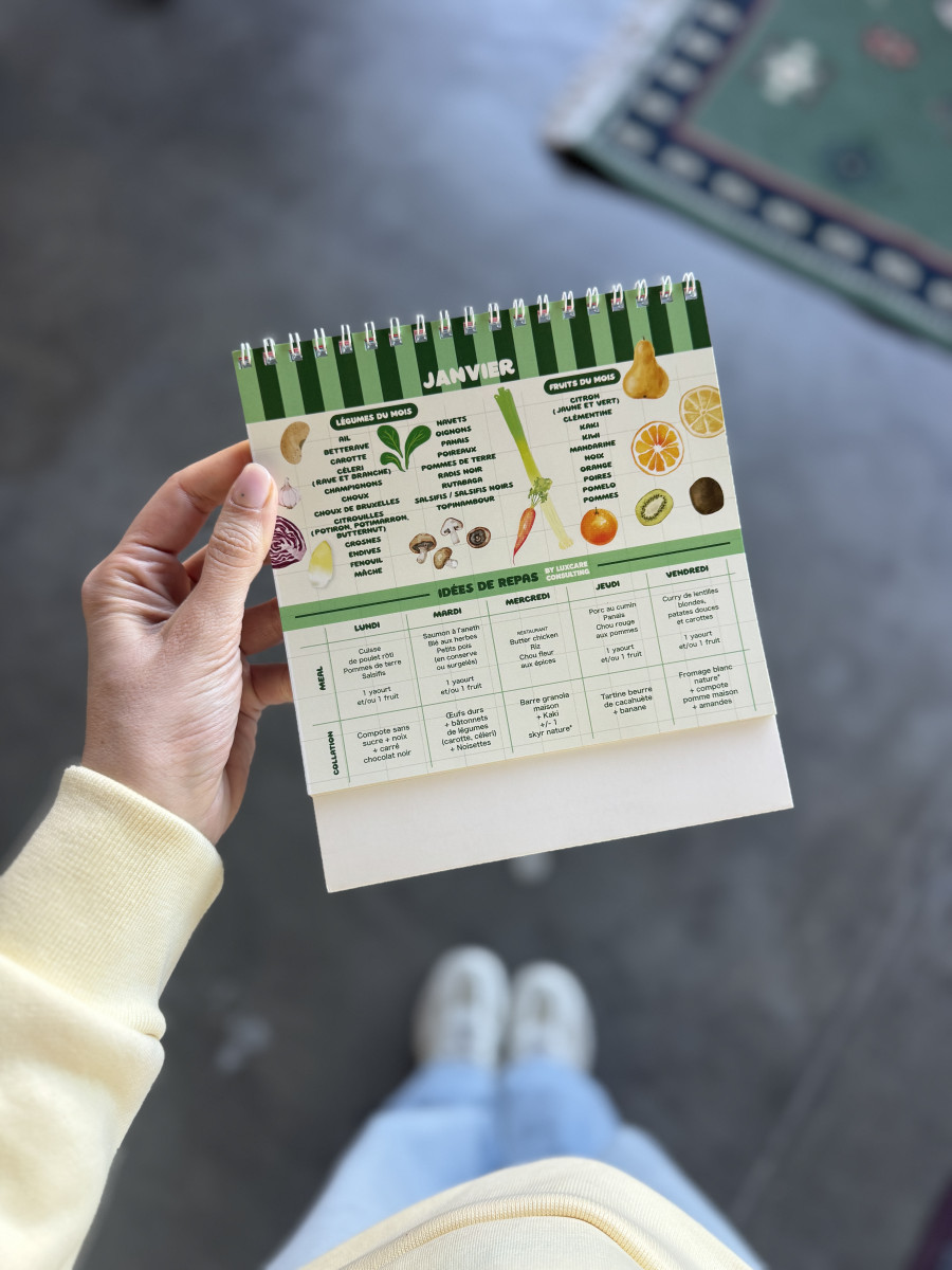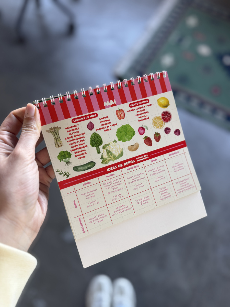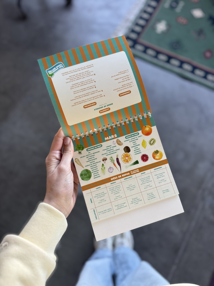 • calendrier des fruits et légumes reprenant des idées de repas & recettes de collations intelligentes