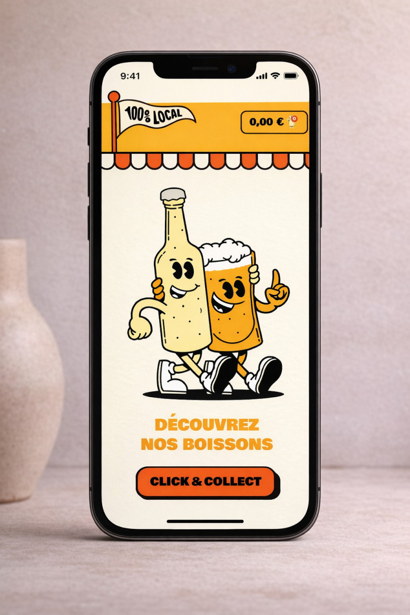 Un univers graphique expressif, inspiré de l’esprit guinguette et des cafés de village, mêlant typographies généreuses, couleurs solaires, illustrations et iconographie artisanale.